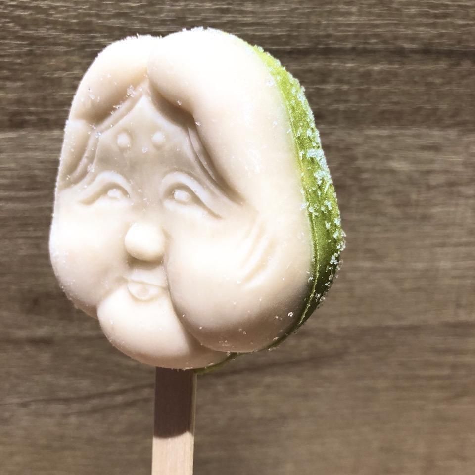 お多福さんの顔側が白小豆、裏が抹茶になっています。